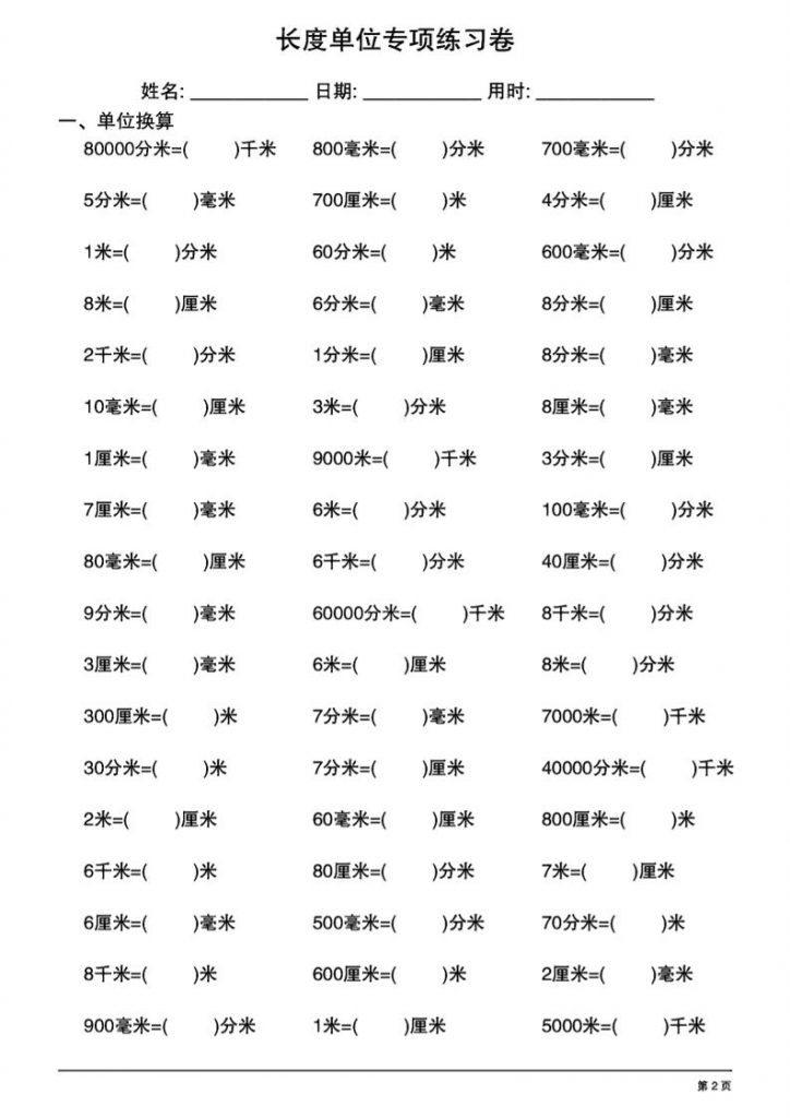 二年级单位换算题100道免费下载可打印晨风闲鱼2月2日 23:03更新关注私信04312 单位换算完整版可打印下载:https://pan.baidu.com/s/147rnWYryCKdMLXGiF5mETg?pwd=tb2g 提取码: tb2g 部分预览: © 版权声明文章版权归作者所有,未经允许请勿转载。THE END学科资料 喜欢就支持一下吧点赞12 分享QQ空间微博QQ好友海报分享复制链接收藏